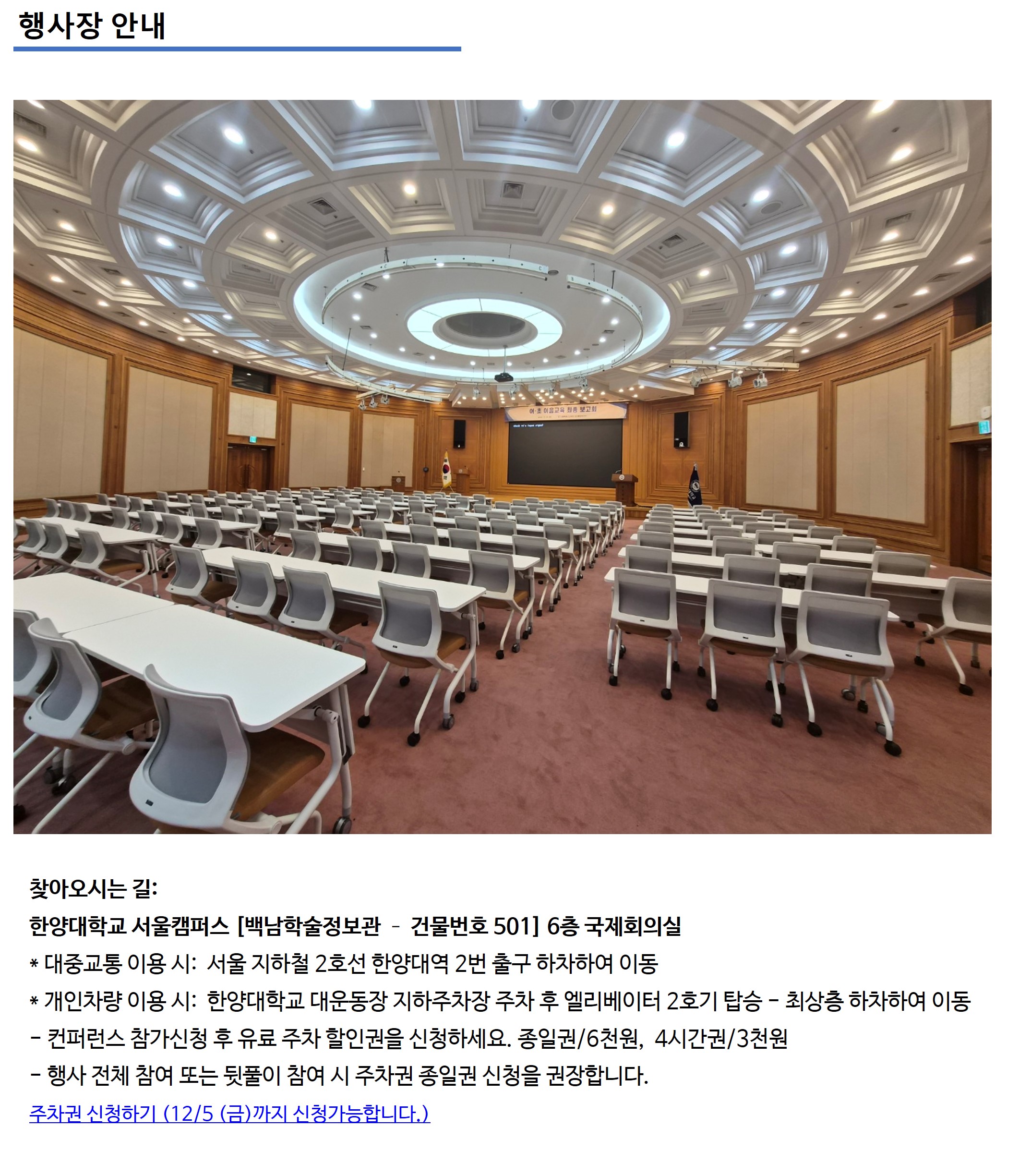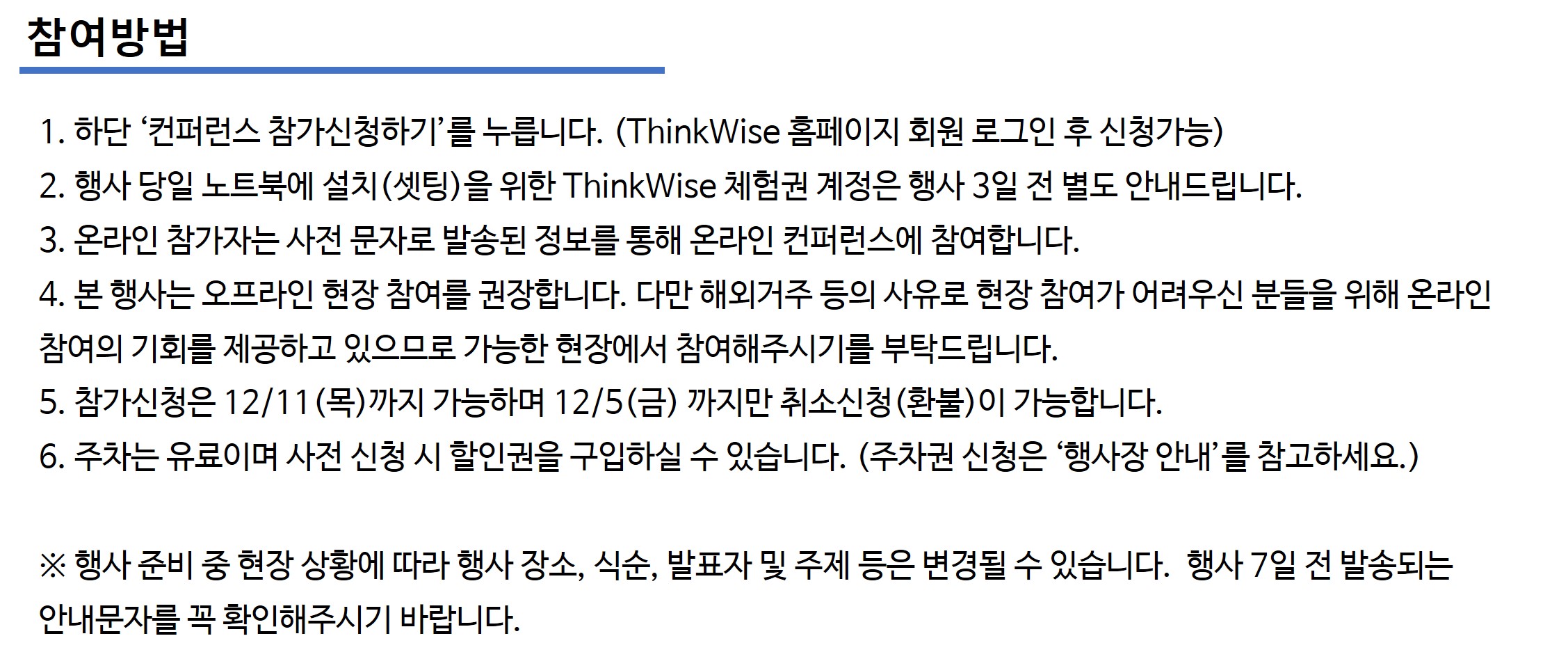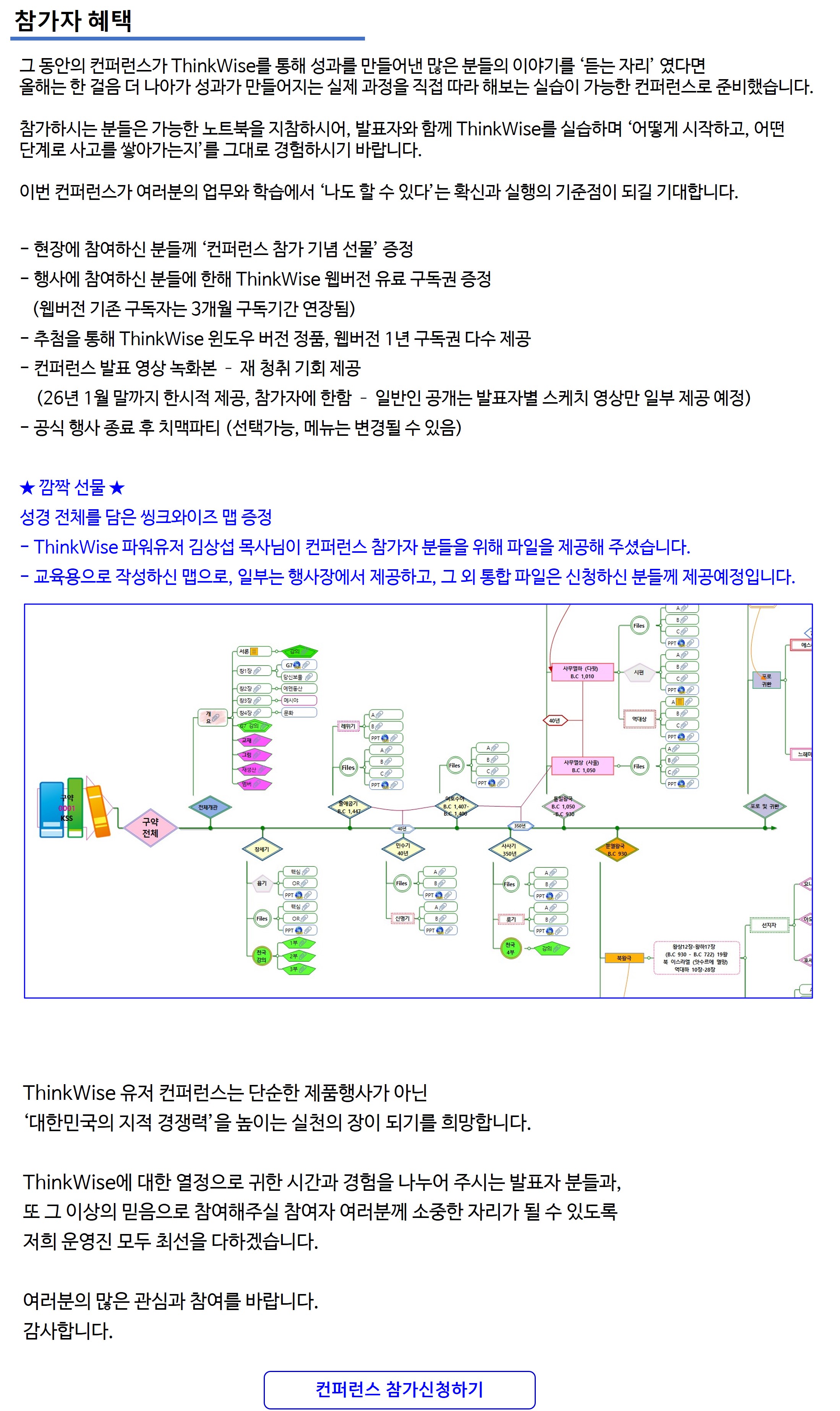 제 9회 ThinkWise 유저 컨퍼런스에 여러분을 초대합니다. (12/13 토, 한양대학교 서울캠퍼스) 페이지 정보 작성자 관리자 댓글 0건 조회 2,748회 작성일 25-11-14 15:31 본문 역대 ThinkWise 유저컨퍼런스 스케치 목록 다음글 25년 10월 교육일정 안내 25.10.01
