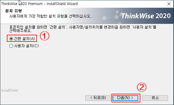 ※ ThinkWise가 설치된 이후 사용자 정보를 대시보드에서 편집할 수 있기에 "간편 설치"를 선택하셔도 무방합니다.