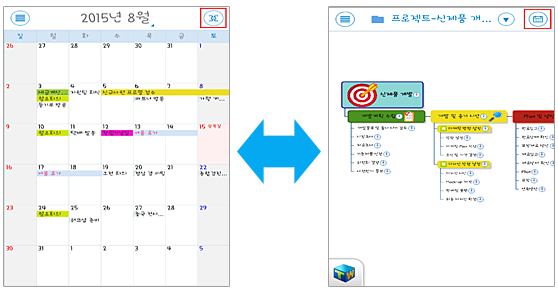 맵에 있는 일정이 플래너에 자동으로 표시되고, 플래너에서 수정하거나 추가한 일정이 자동으로 맵에 반영됨으로서 프로젝트 진행 상황에 대한 입체적 조감을 가능하게 합니다.